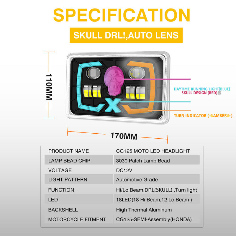 YAYE CG125 Semi-assemblaggio Lente Proiettore Teschio Rosso DRL Faro LED per Moto 22