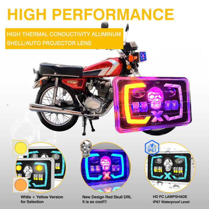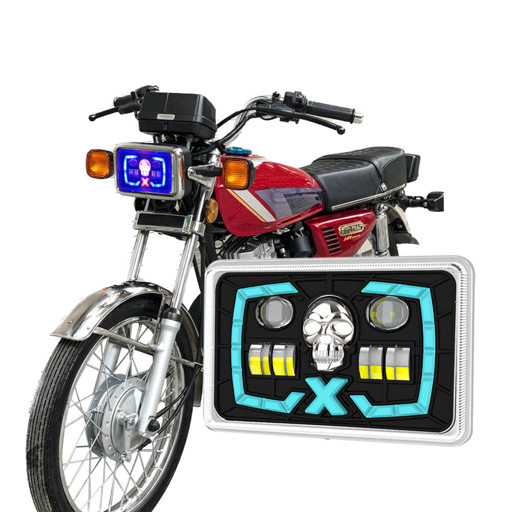 YAYE CG125 Semi-assemblaggio Lente Proiettore Teschio Rosso DRL Faro LED per Moto