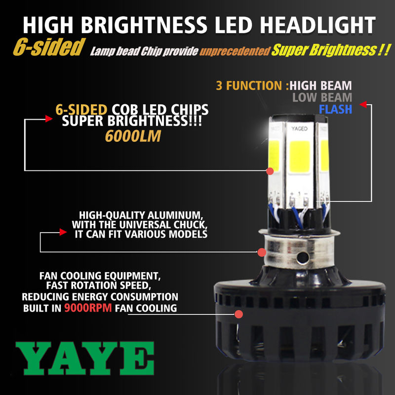 6 lampada laterale chip perla motociclistica bulit in ventola di raffreddamento faro