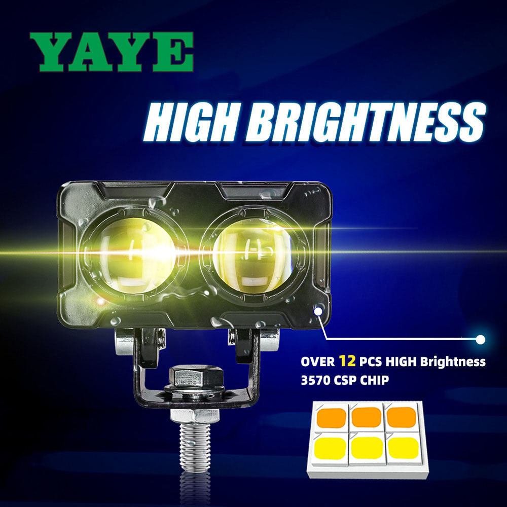 YAYE Exploradoras Para Moto Luces Mini Spot Light Led Lente De Doble Proyector Amarillo Blanco 20W 2000LM 2